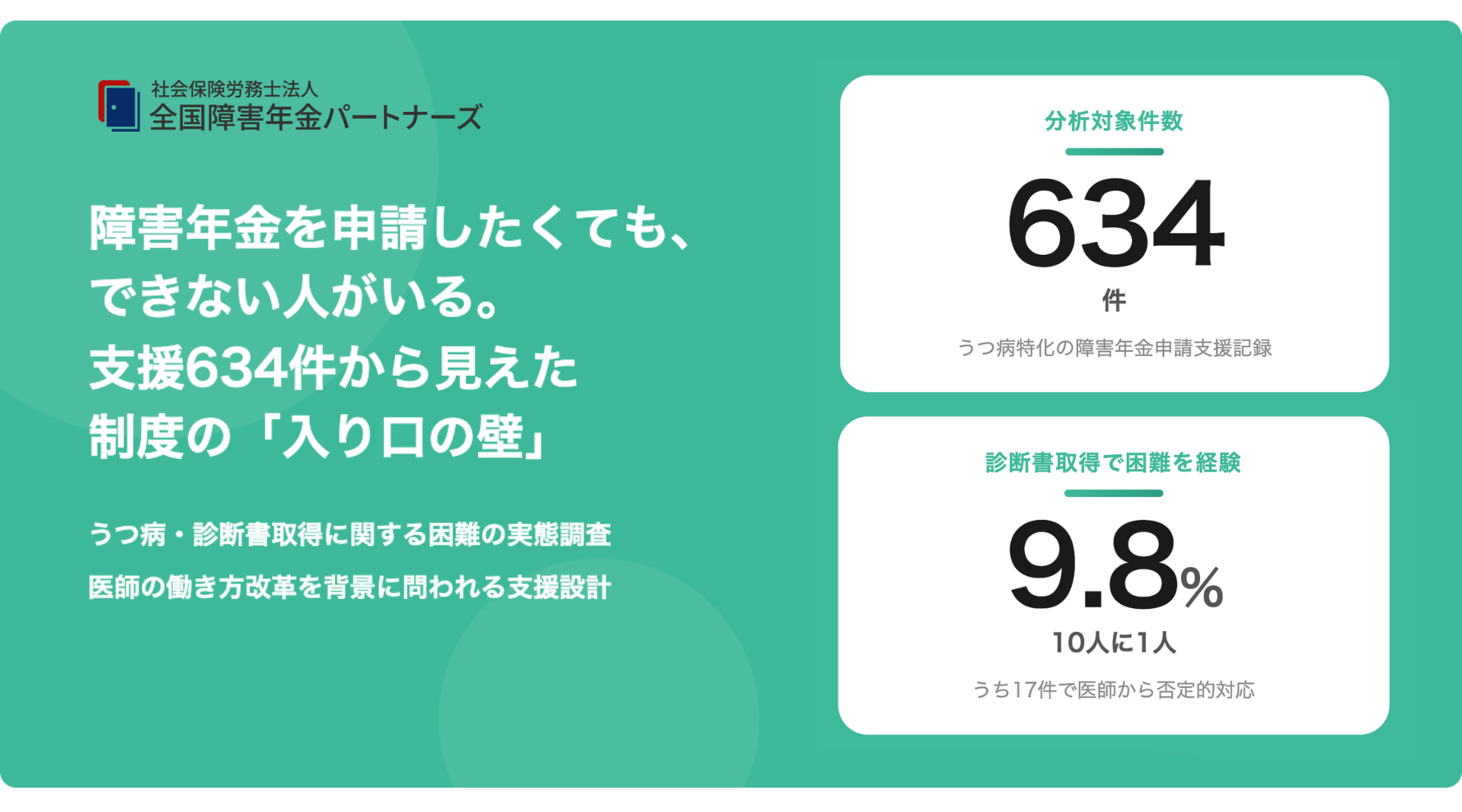 「障害年金、制度は知っているのに申請できない」10人に1人が診断書の取得で立ち止まる