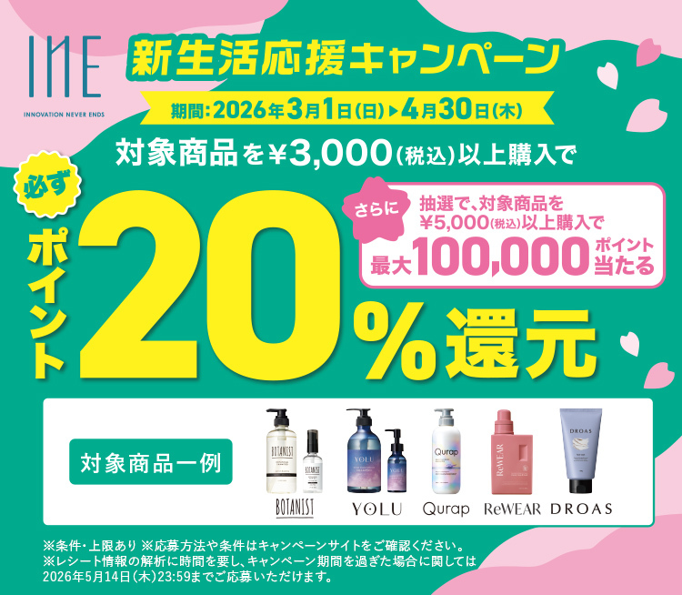 新生活を応援!「BOTANIST」「YOLU」などの対象商品購入により 「20%ポイント還元&抽選で最大10万ポイント」が当たるレシート応募型キャンペーンを3月1日より開始