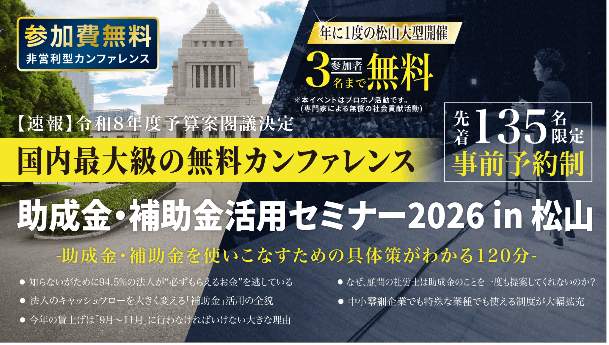 中小法人が今すぐ活用できる制度を解説「助成金・補助金活用セミナー2026 in 松山」6/2(火)開催