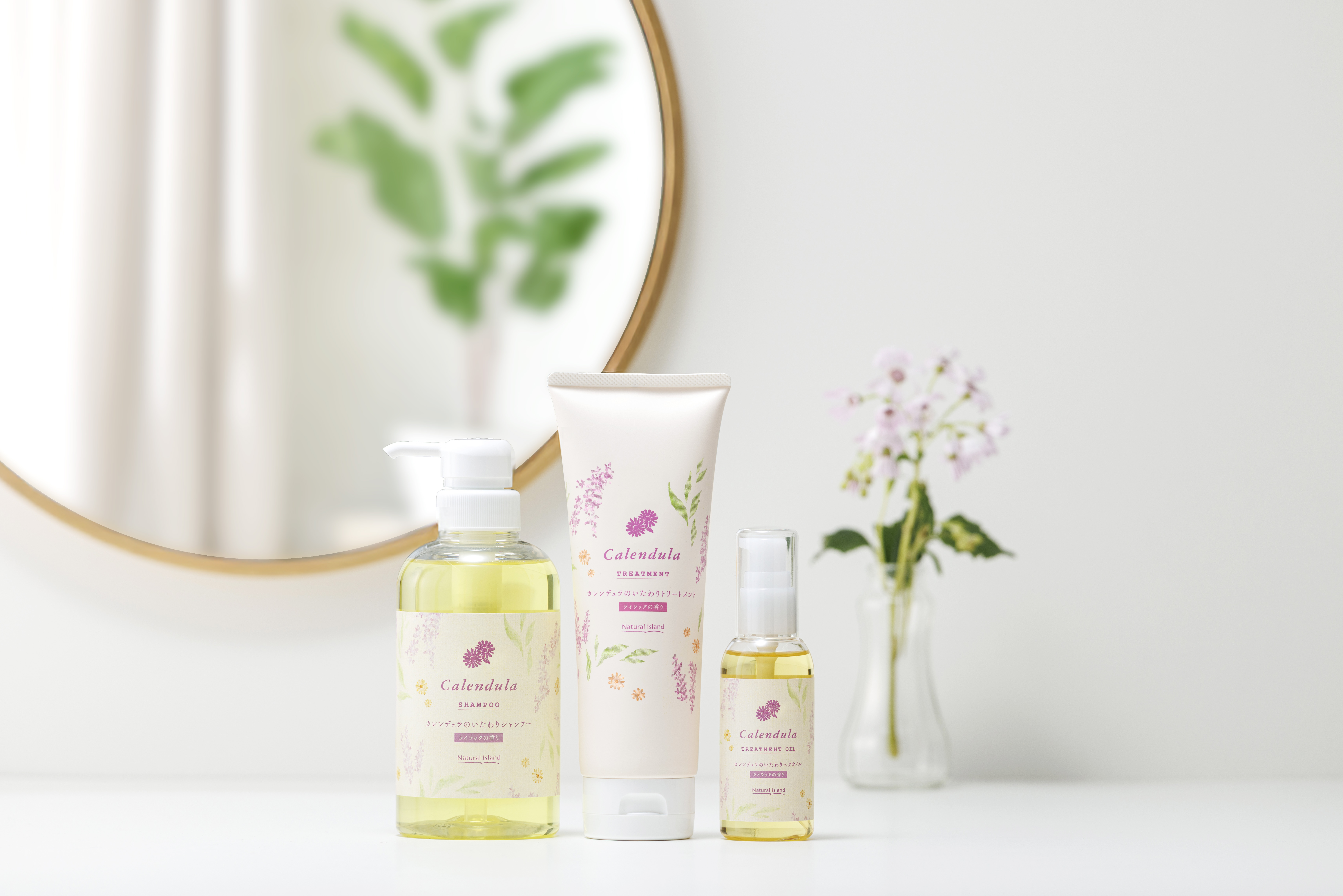初夏限定で26年4月24日新発売。ナチュラルアイランドのカレンデュラいたわりヘアケアシリーズに、ライラックの香り3アイテム。