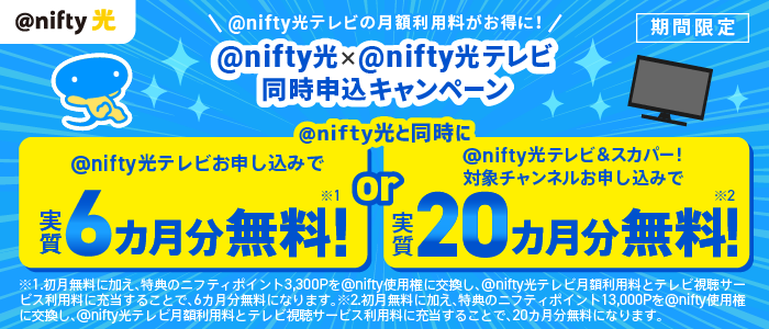 ニフティ、「@nifty光」×「@nifty光テレビ」同時申込キャンペーンを実施
