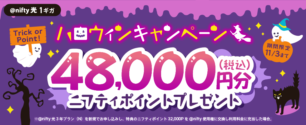 ニフティ、「@nifty光 3年プラン(N)」の新規申込者を対象にハロウィンキャンペーンを実施~SNS投稿で豪華賞品が当たる「#ニフティと楽しむオンラインハロウィン」キャンペーンも同時開催~