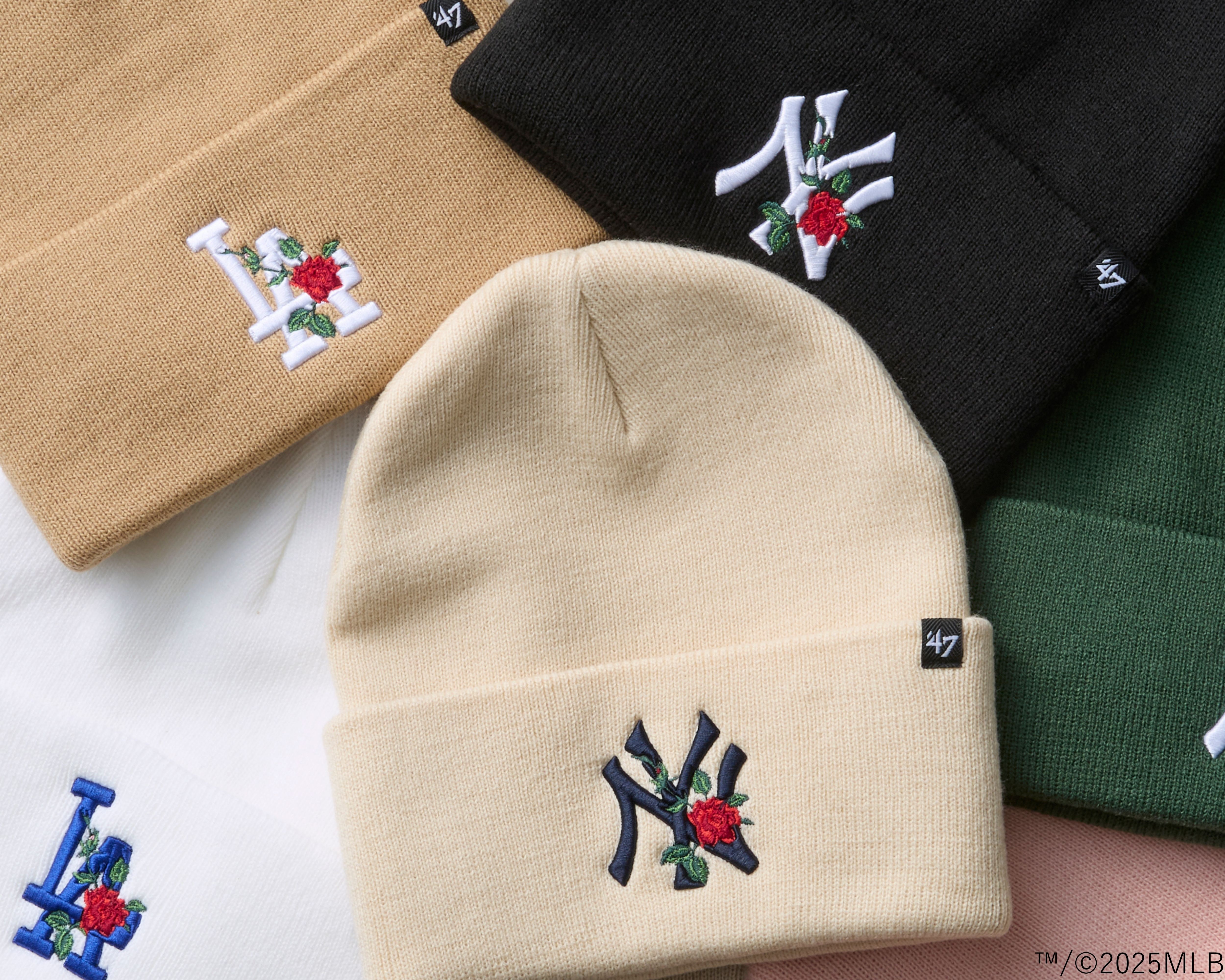 【’47(フォーティーセブン)】冬の装いに華やかさを添える、MLB球団ロゴとバラを組み合わせたニットキャップが登場