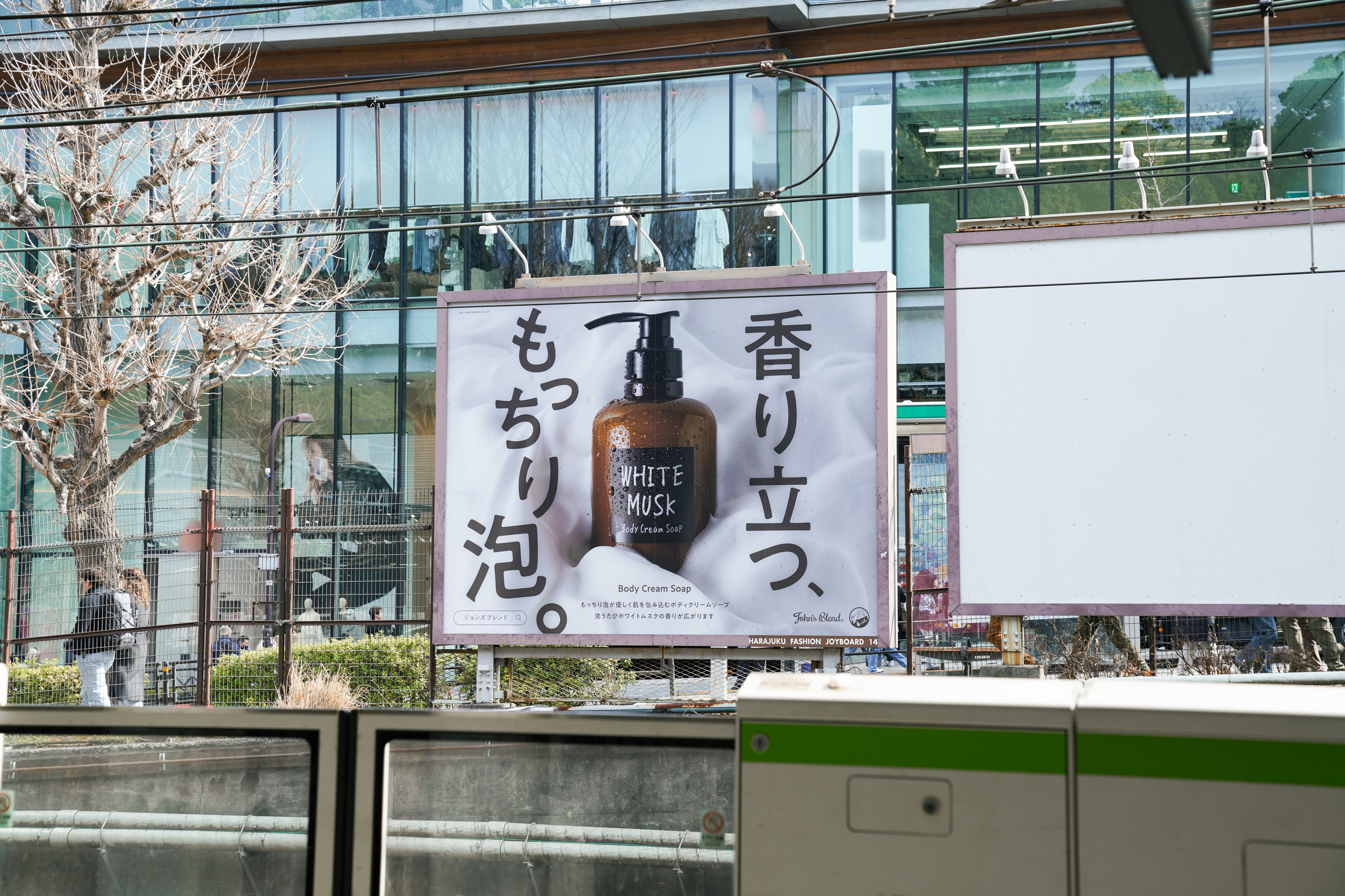 "香り立つ、もっちり泡"を日常に。John’s Blendが原宿駅の看板を刷新。人気のボディクリームソープに待望の詰め替えリフィル発売。