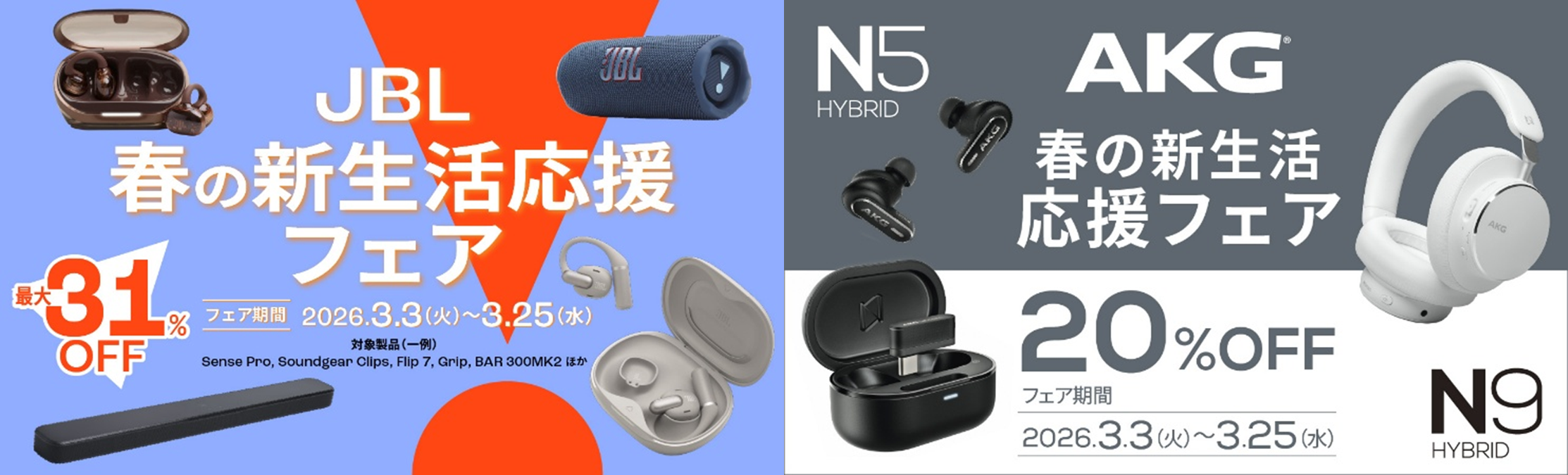 人気のワイヤレスイヤホンやポータブルスピーカー、サウンドバーが最大31%OFF 豪華ラインナップの「春の新生活応援フェア2026」を開催!