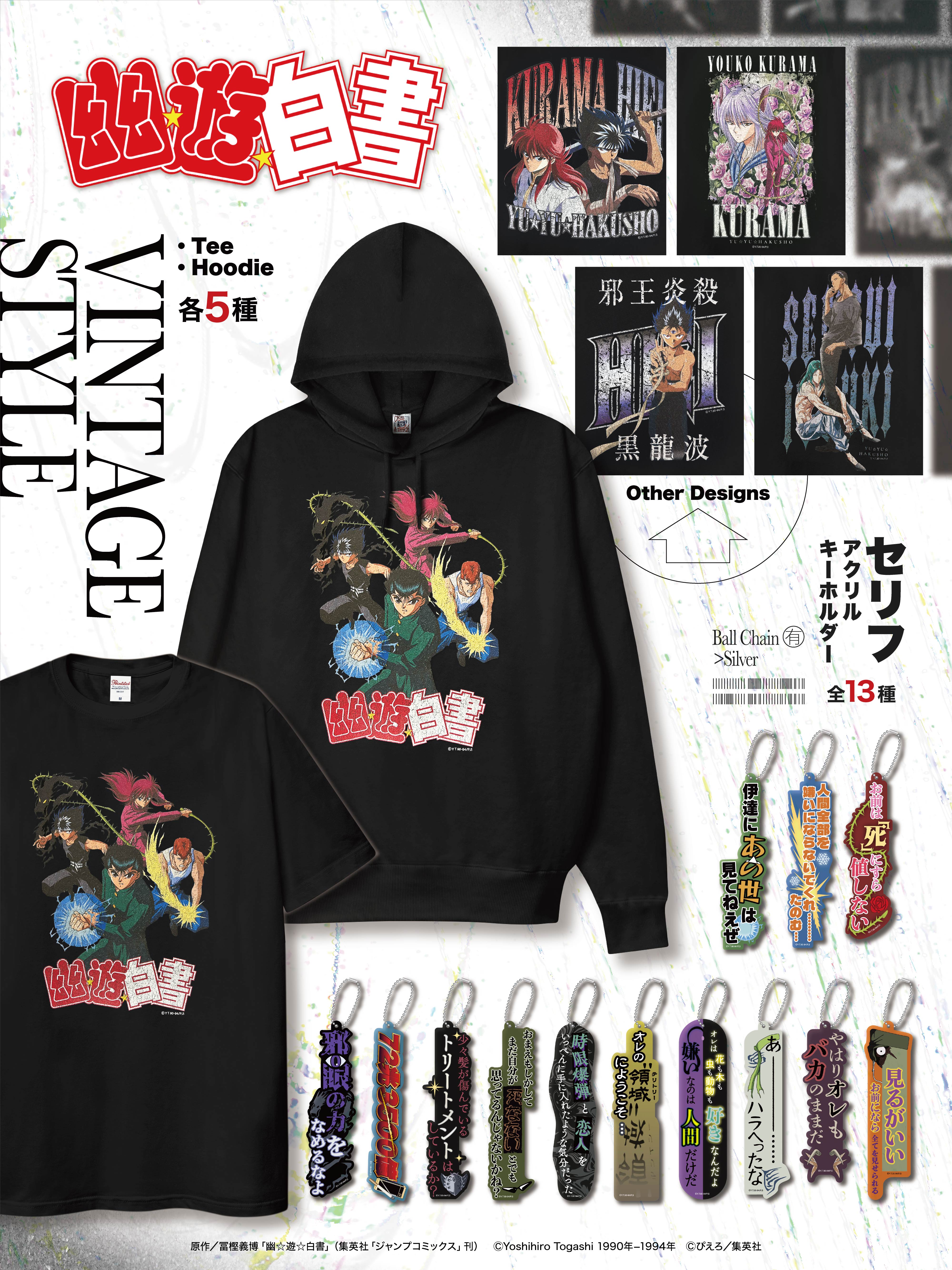 TVアニメ『幽☆遊☆白書』より新グッズ登場!ヴィンテージ風アパレルや名セリフをデザインしたアクリルキーホルダーなど、ファン必見のアイテムが発売!