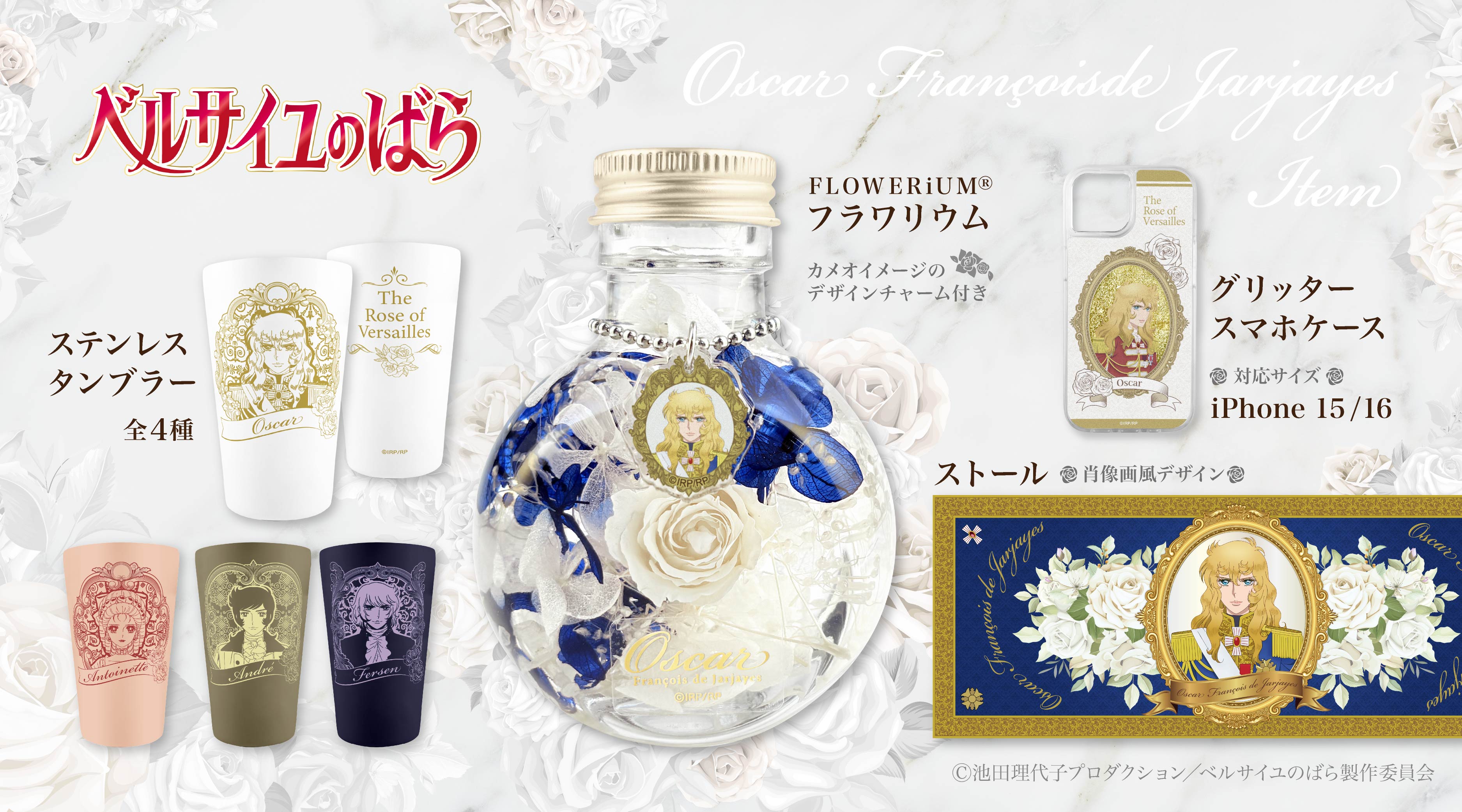 劇場アニメ『ベルサイユのばら』より、「オスカル・フランソワ・ド・ジャルジェ」をイメージした新感覚のインテリアFLOWERiUM(R)(フラワリウム)をはじめとする、作品の世界観を堪能できるグッズが新登場!