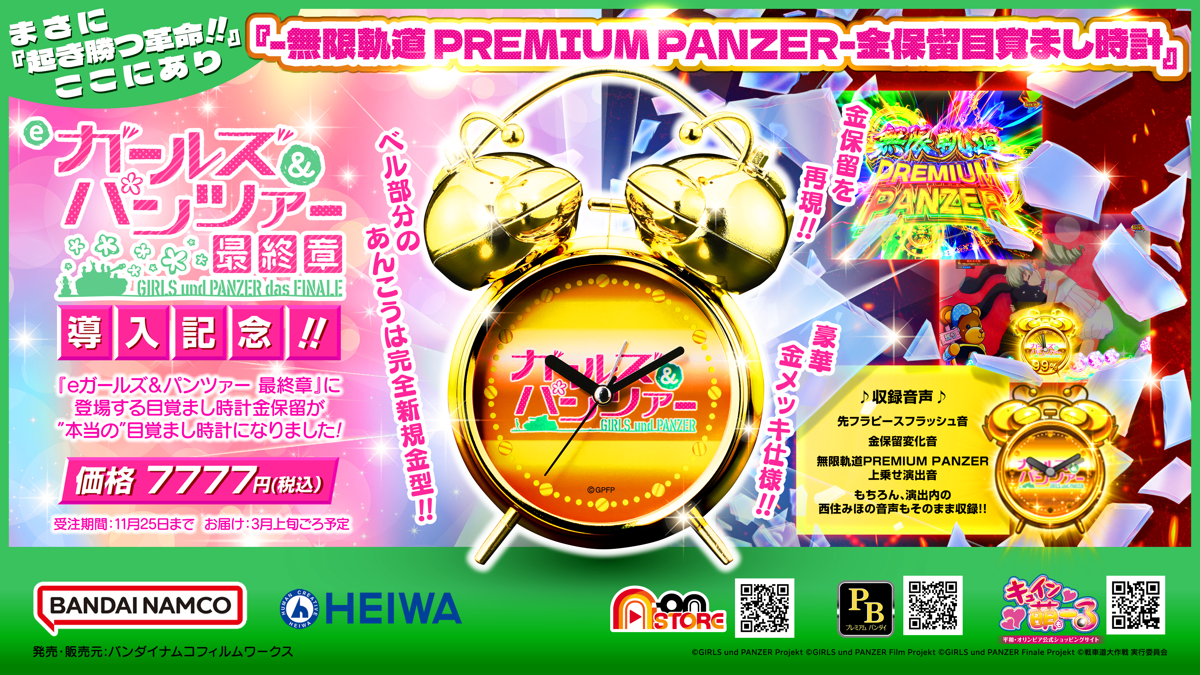 遊技機「eガールズ&パンツァー 最終章」の演出をモチーフにした目覚まし時計「-無限軌道 PREMIUM PANZER-金保留目覚まし時計」