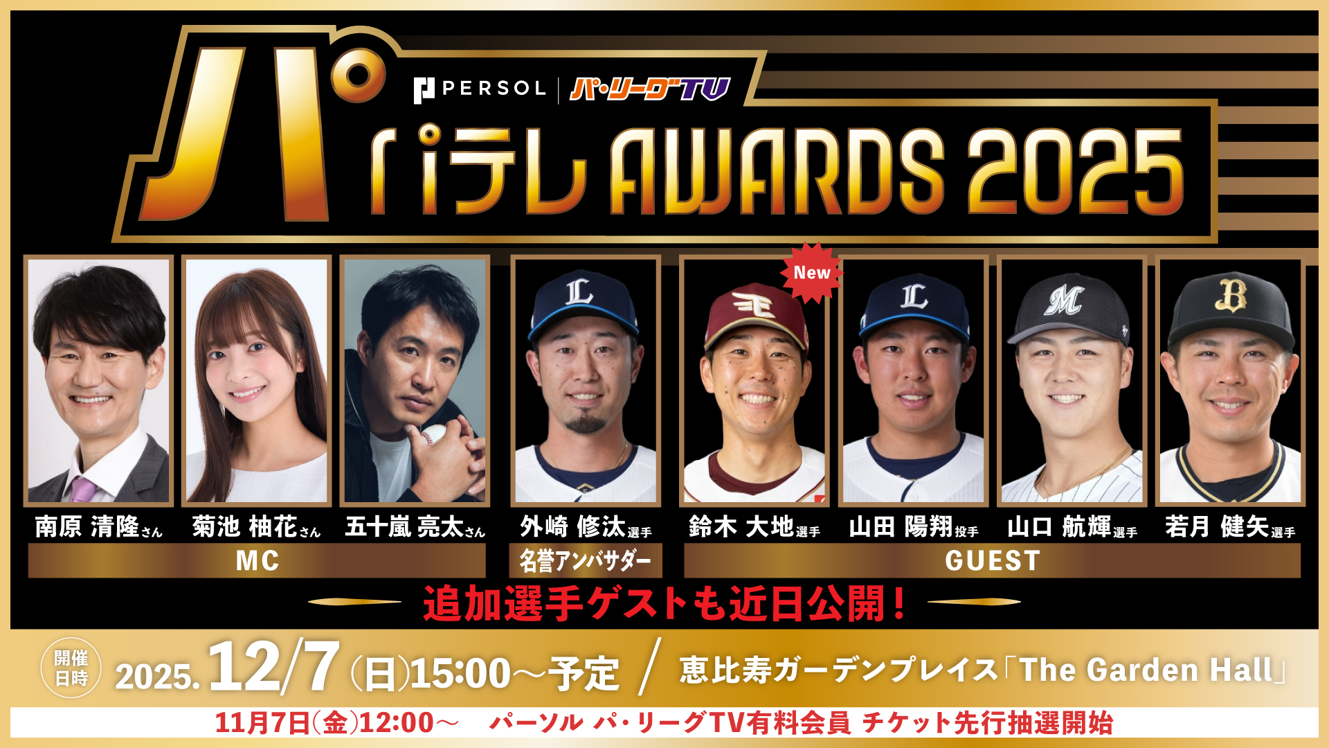 【パテレアワード2025】楽天イーグルス鈴木大地選手の出演が追加決定!