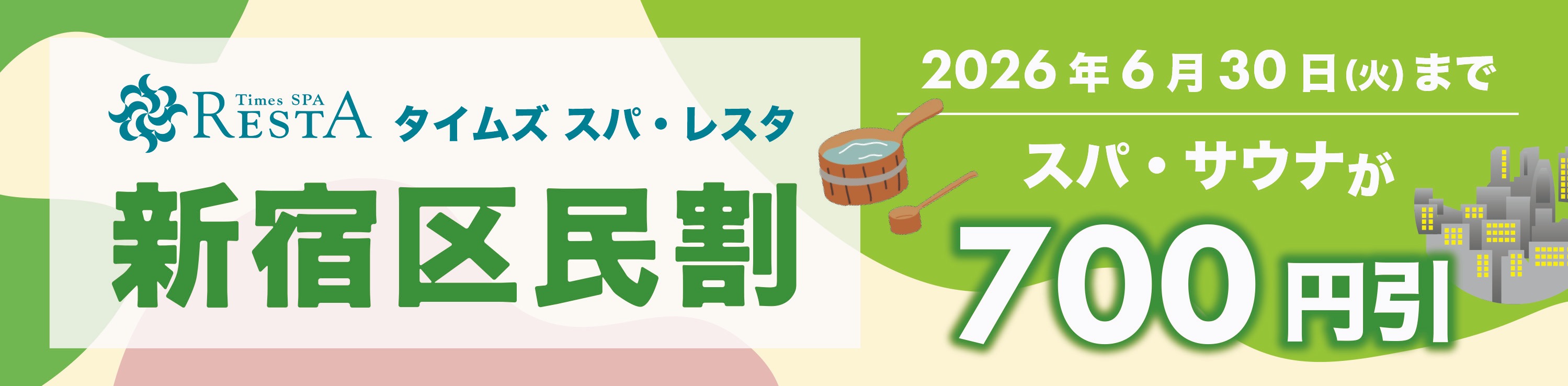 東京・池袋 都心の大人のスパ施設「タイムズ スパ・レスタ」「新宿区民割」「北区民割」キャンペーンを開催