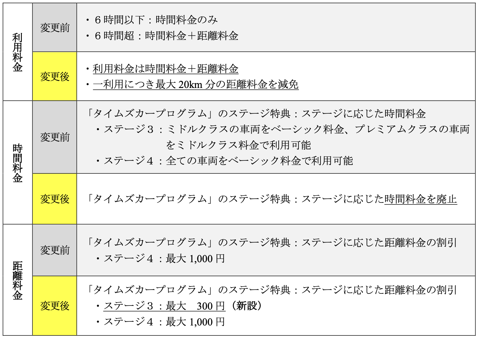 カーシェアリングサービス「タイムズカー」の料金変更について