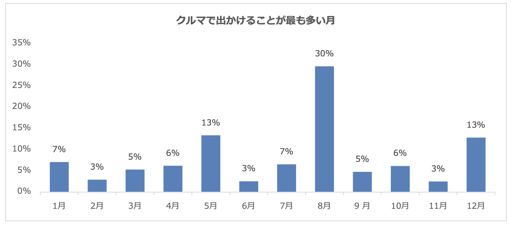 クルマでお出かけすることが多い月は8月がトップ!お出かけ先は「山」や「温泉」が人気!