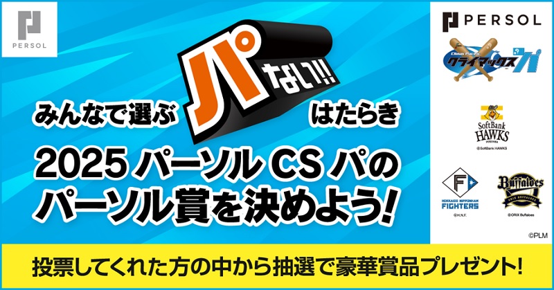 『2025 パーソル クライマックスシリーズ パ』開催記念「みんなで選ぶ“パない” はたらき投票キャンペーン」を実施“パない”はたらき をした選手へ投票してパーソル賞を決めよう!