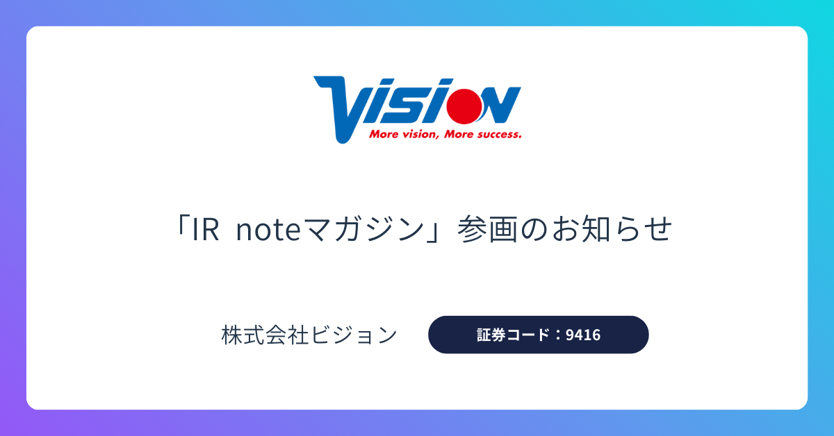 株式会社ビジョン、メディアプラットフォームnoteの「IR noteマガジン」に参画。