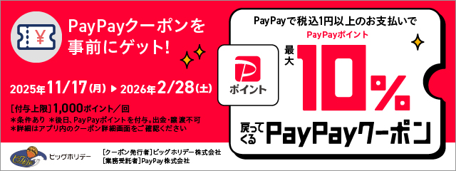 ビッグホリデー「PayPay」の決済で対象ツアー最大10%※1の「PayPayポイント」付与キャンペーン、2025年11月17日より開催