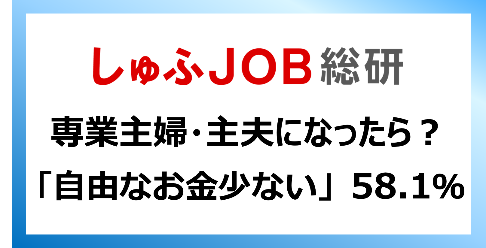 『専業主婦・主夫』になったとしたらどのように感じそう?「自由なお金少ない 」58.1%