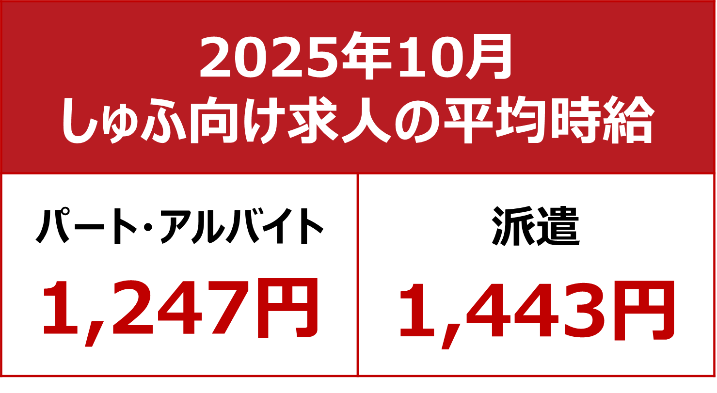 【2025年10月しゅふ求人の平均時給】パート・アルバイト:『1,247円』、派遣:『1,443円』/パート時給3ヶ月連続過去最高を更新!