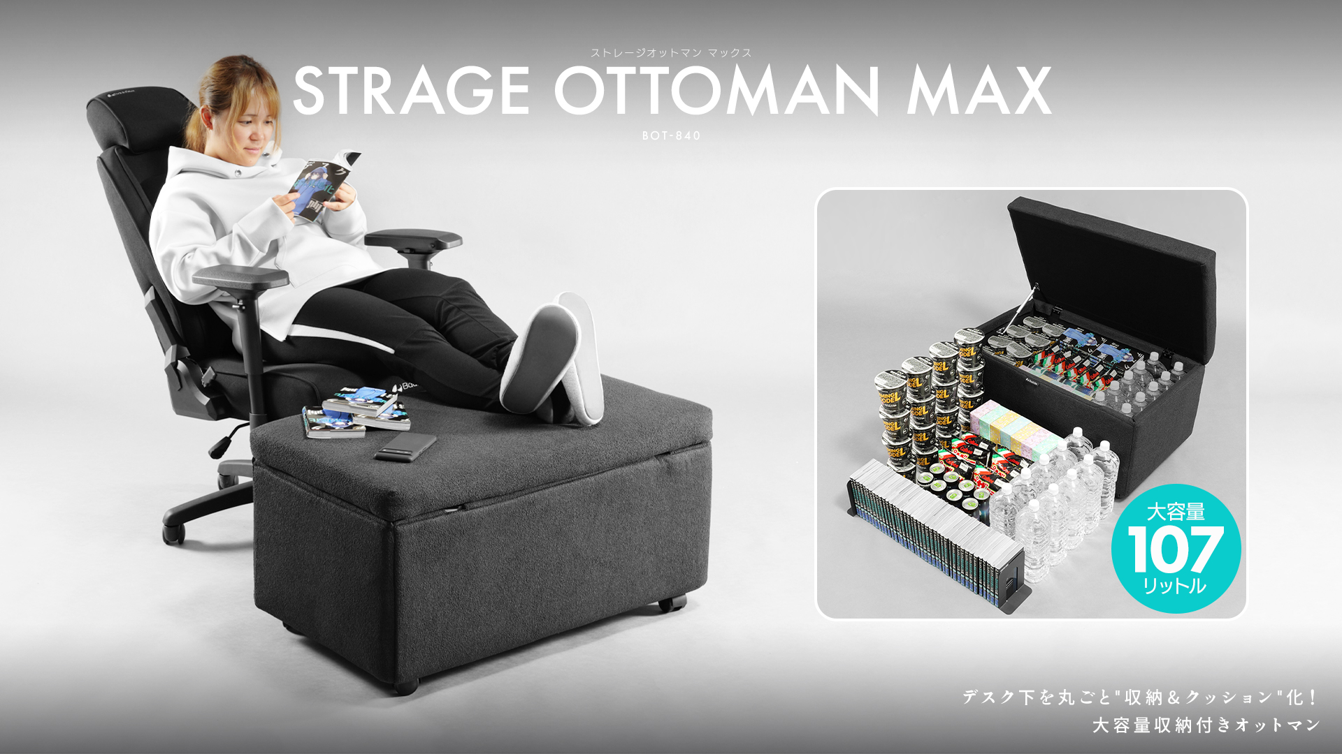デスク下デッドスペースを丸ごと"収納&クッション"化!容量100L超えの超大型オットマンを発売