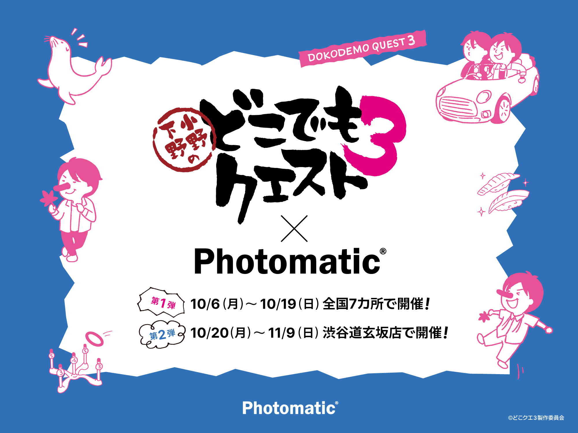 声優バラエティ「小野下野のどこでもクエスト3」とセルフフォトブランド「Photomatic」が10月6日(月)からコラボ開始
