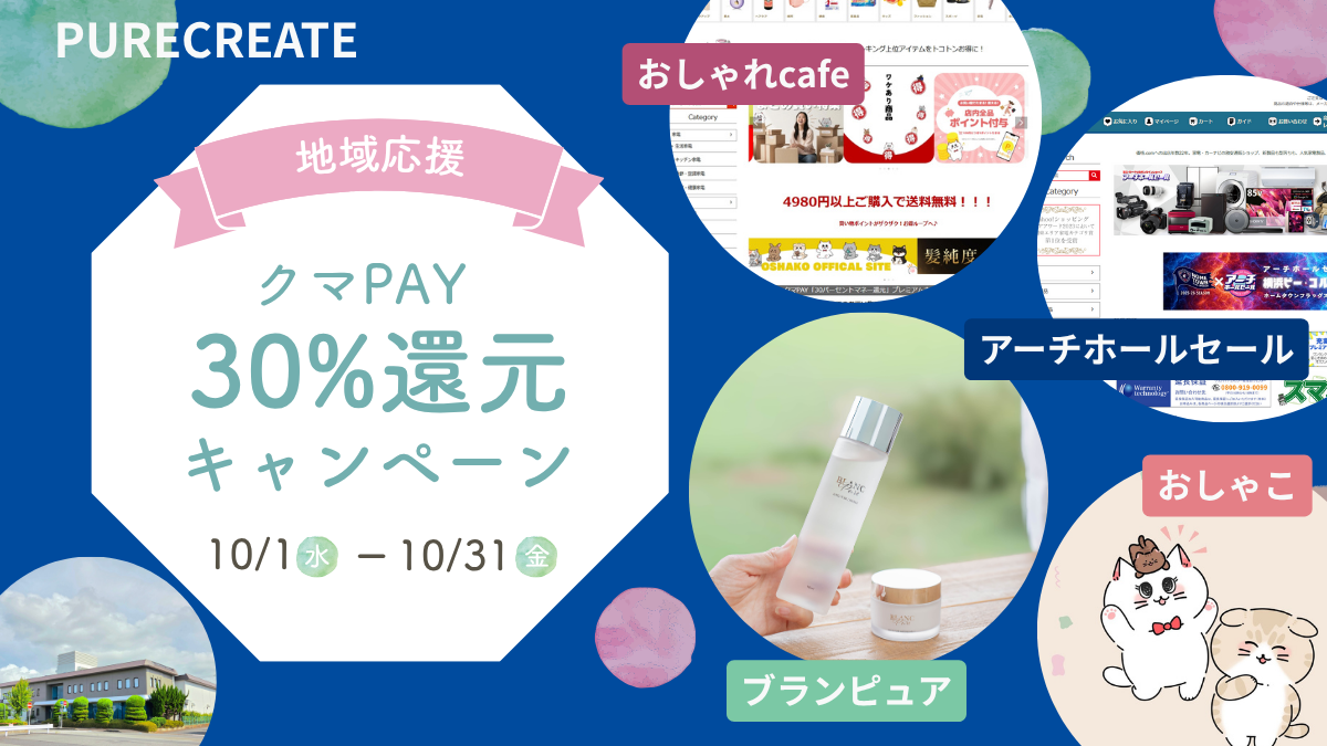 熊谷市の地域通貨クマPAY30%還元、ピュアクリエイト運営3店舗の【店頭支払い】で利用可能に。家電もコスメもお得!