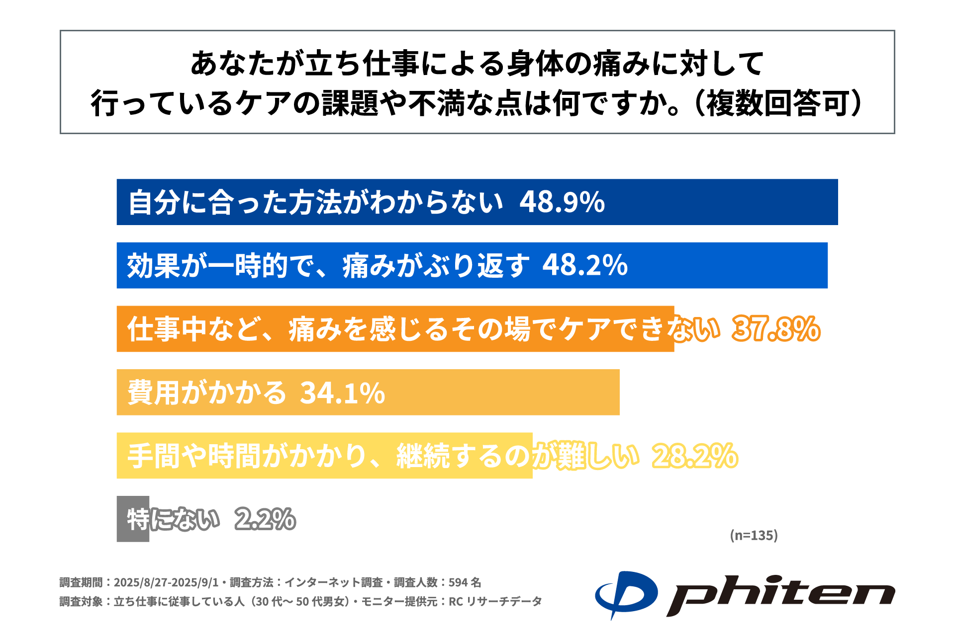 ~立ち仕事による身体の痛みに対して、自分に合ったケア方法がわからない「ボディケア難民」と判明 ~ファイテンが「立ち仕事による身体の痛みとケアに関する実態調査」を実施!