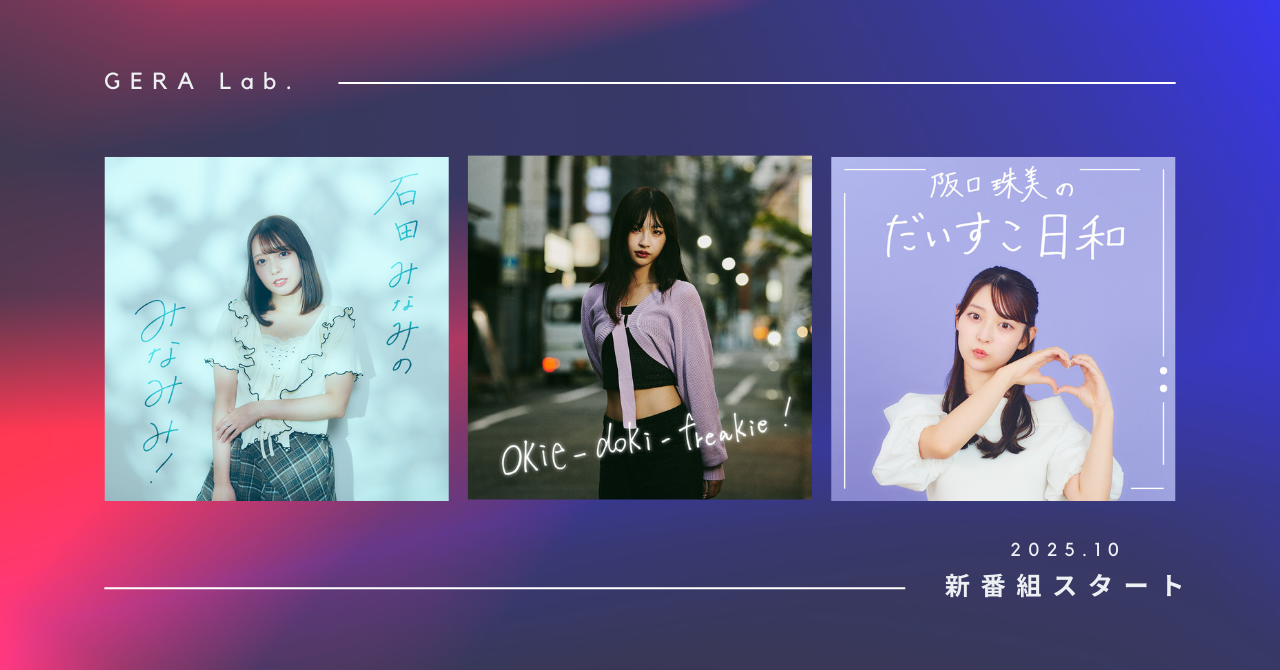 【お笑いラジオアプリGERA】GERA Lab. 新たに3番組スタート ー石田みなみ、沖侑果、阪口珠美ー