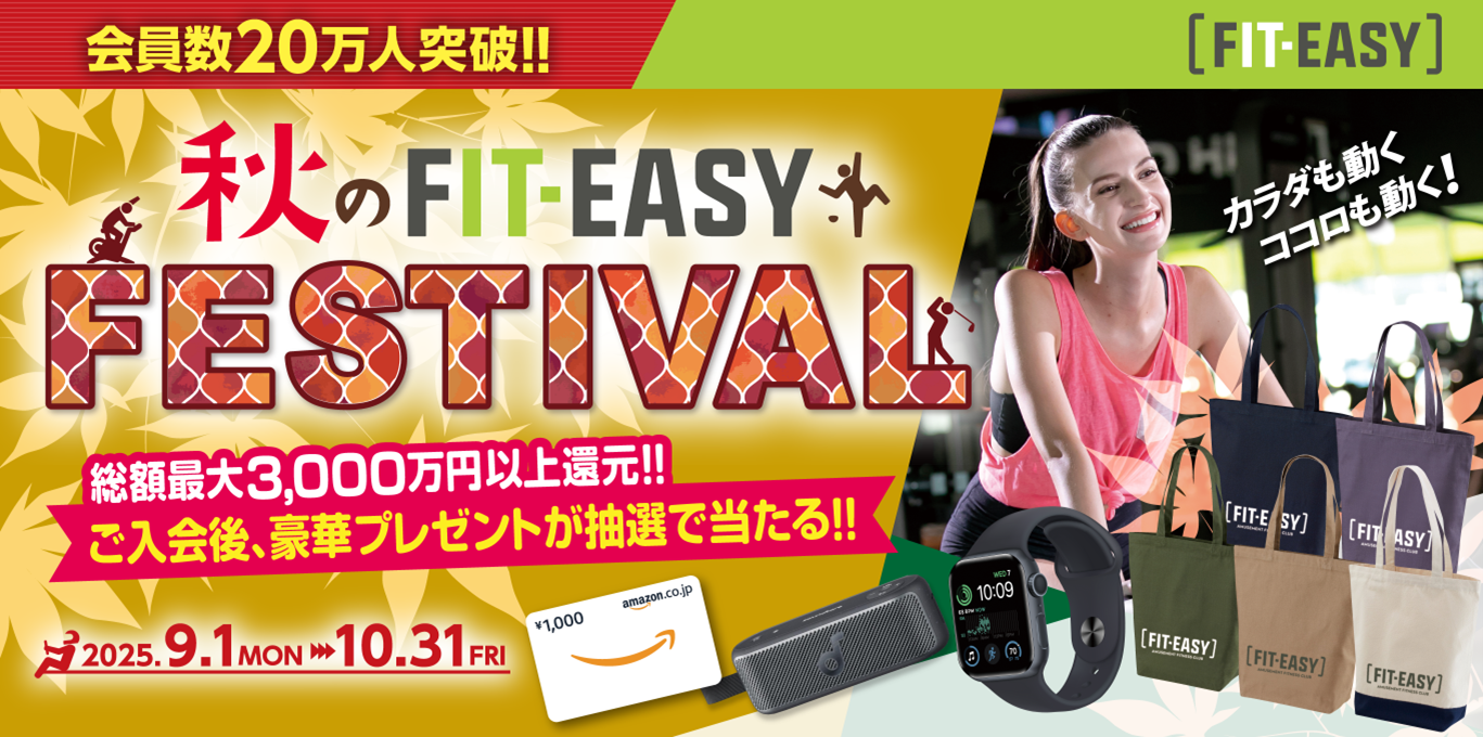 まもなく終了!フィットイージー会員数20万人突破記念「秋のFIT-EASY FESTIVAL」