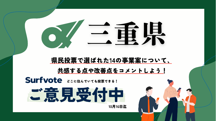 【提案受付中】あなたの声が三重県の未来を変える!Surfvoteで県民提案予算14の事業案に対する意見を募集中!