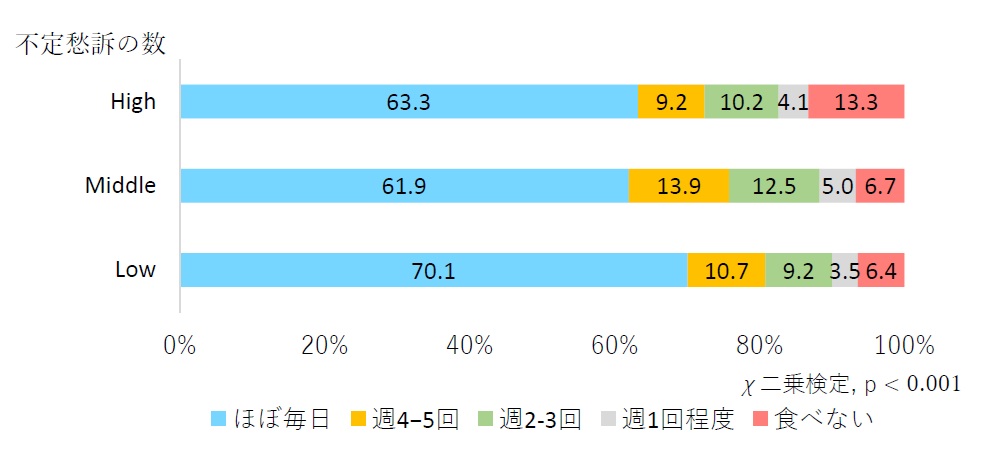女性の不定愁訴の多さに「朝食」の欠食や食物繊維摂取の低さ、洋菓子摂取の多さが関連