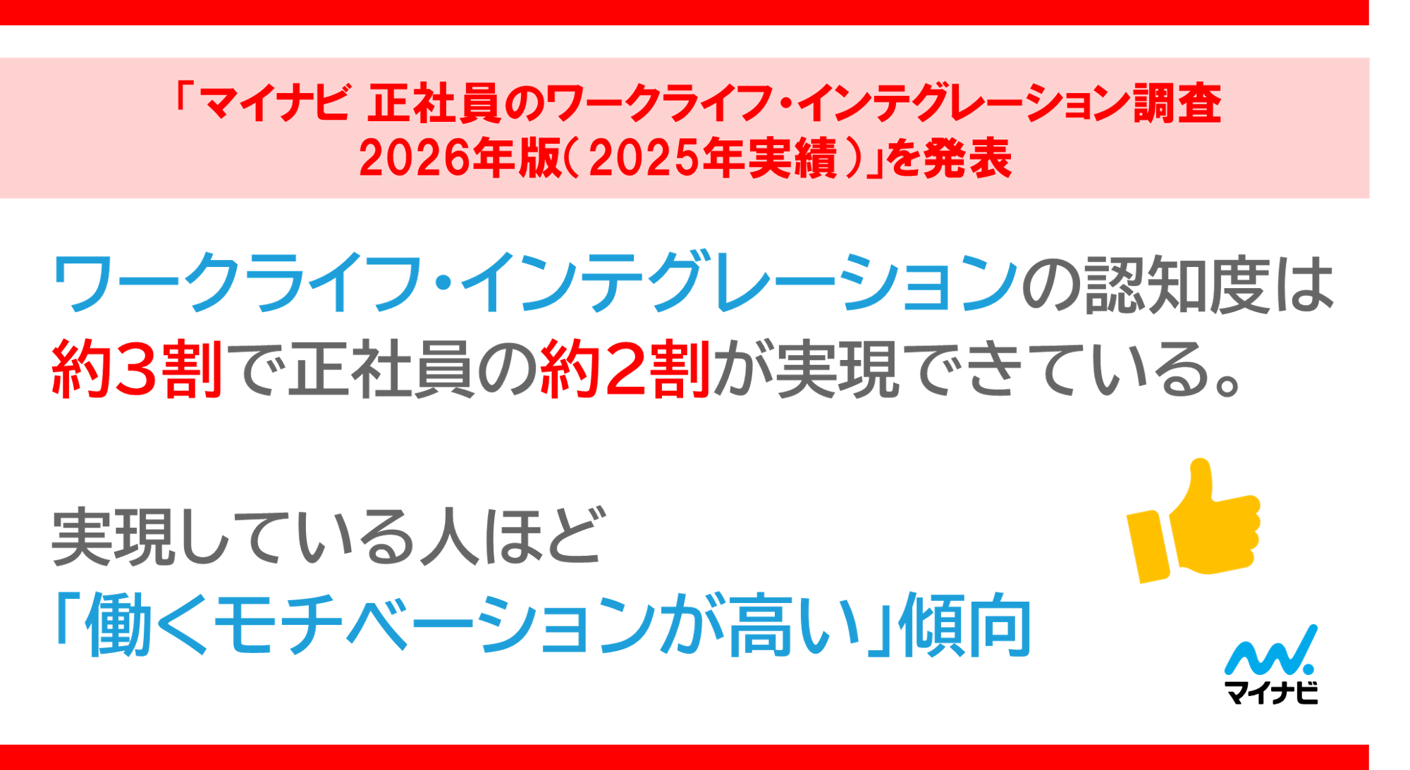 「マイナビ 正社員のワークライフ・インテグレーション調査2026年版(2025年実績)」を発表