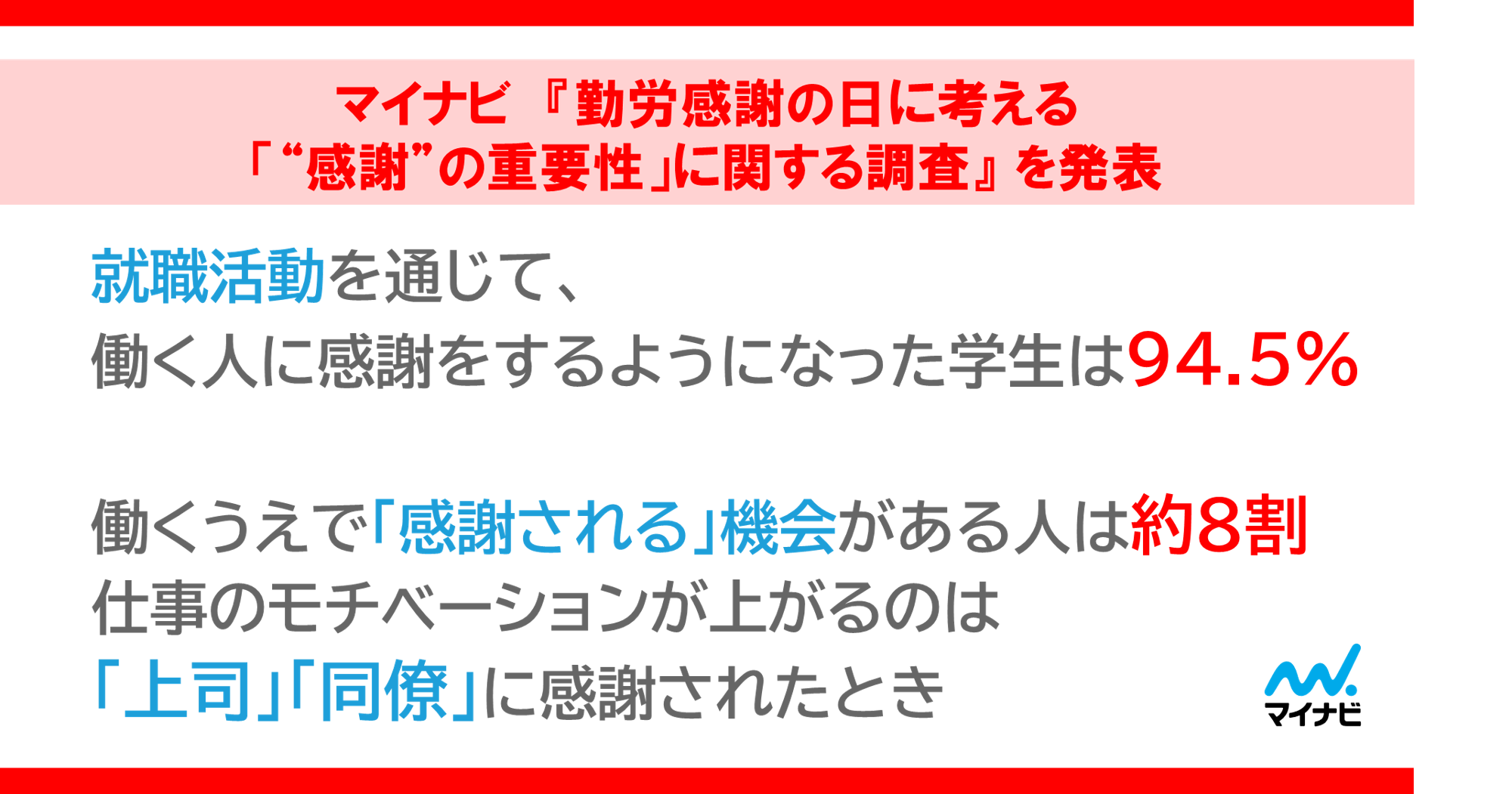 マイナビ 『勤労感謝の日に考える「“感謝”の重要性」に関する調査』