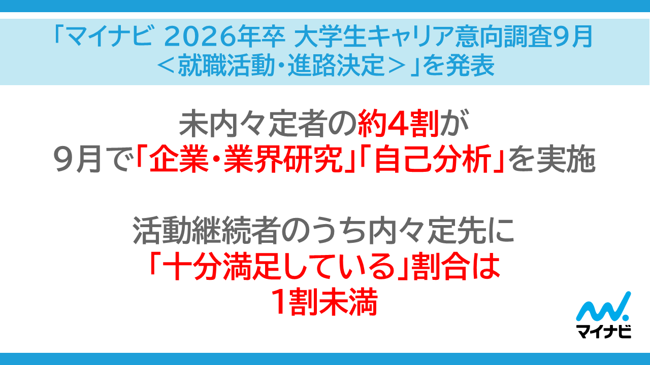「マイナビ2026年卒 大学生キャリア意向調査9月<就職活動・進路決定>」を発表