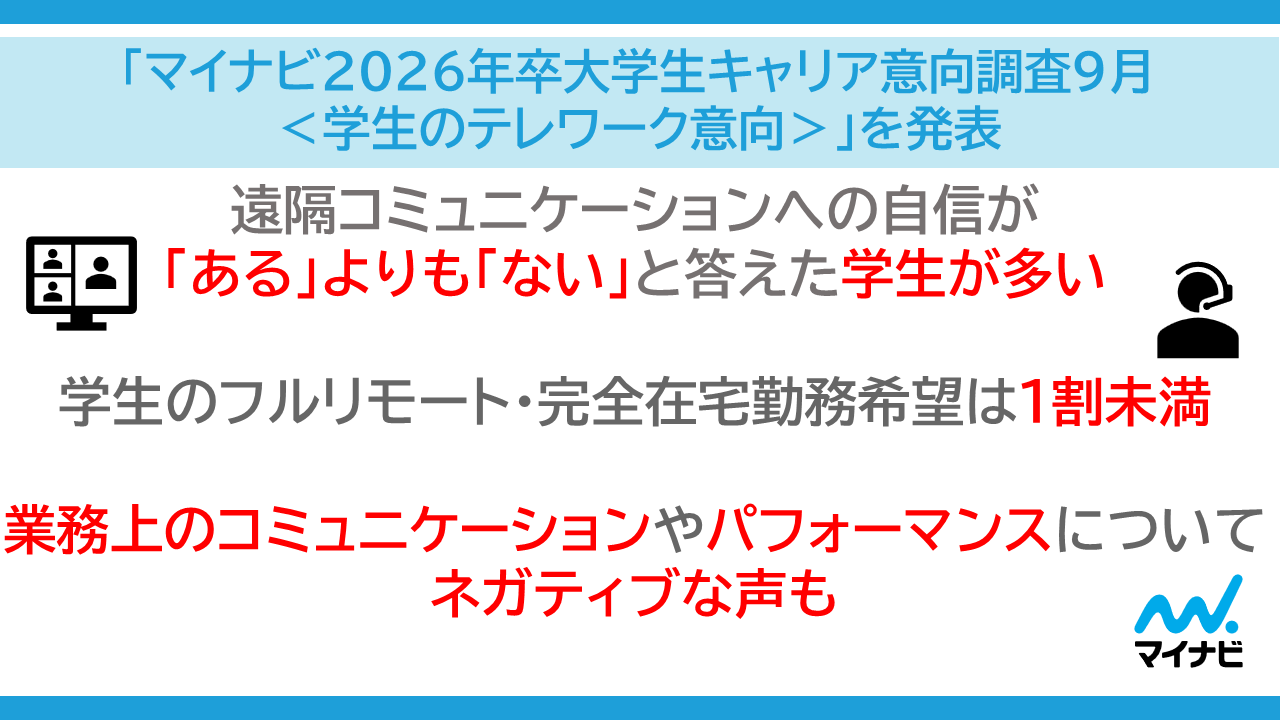 「マイナビ2026年卒大学生キャリア意向調査9月<学生のテレワーク意向>」を発表