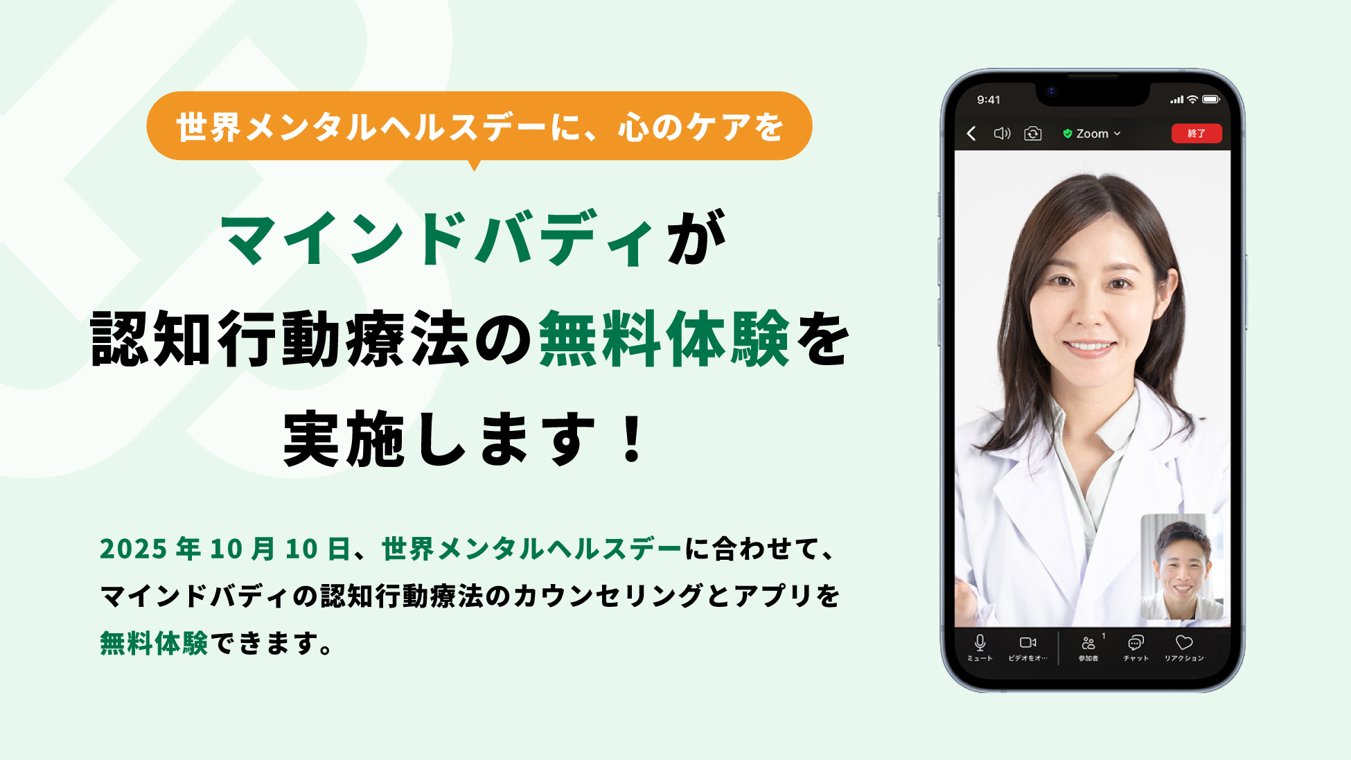 【10月10日世界メンタルヘルデー】メンタルヘルスの社会課題解決に挑むマインドバディが、認知行動療法の無料体験を実施中
