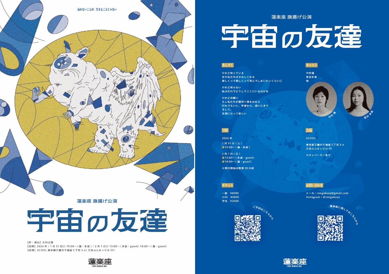 【まもなく1月31日 (土) 開幕】〈剥き出しの命で 魂を震わせる〉蓮楽座旗揚げ公演『宇宙の友達』三鷹SCOOLにて上演 チケット発売中