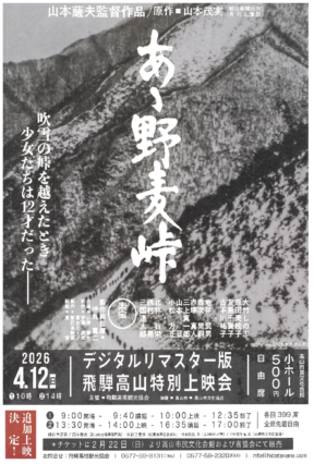 【飛騨高山・岐阜県高山市】「あゝ野麦峠」デジタルリマスター版 飛騨高山特別上映会 ≪同時開催≫ 沖野 清「野麦峠を越えた女工たち」展 開催