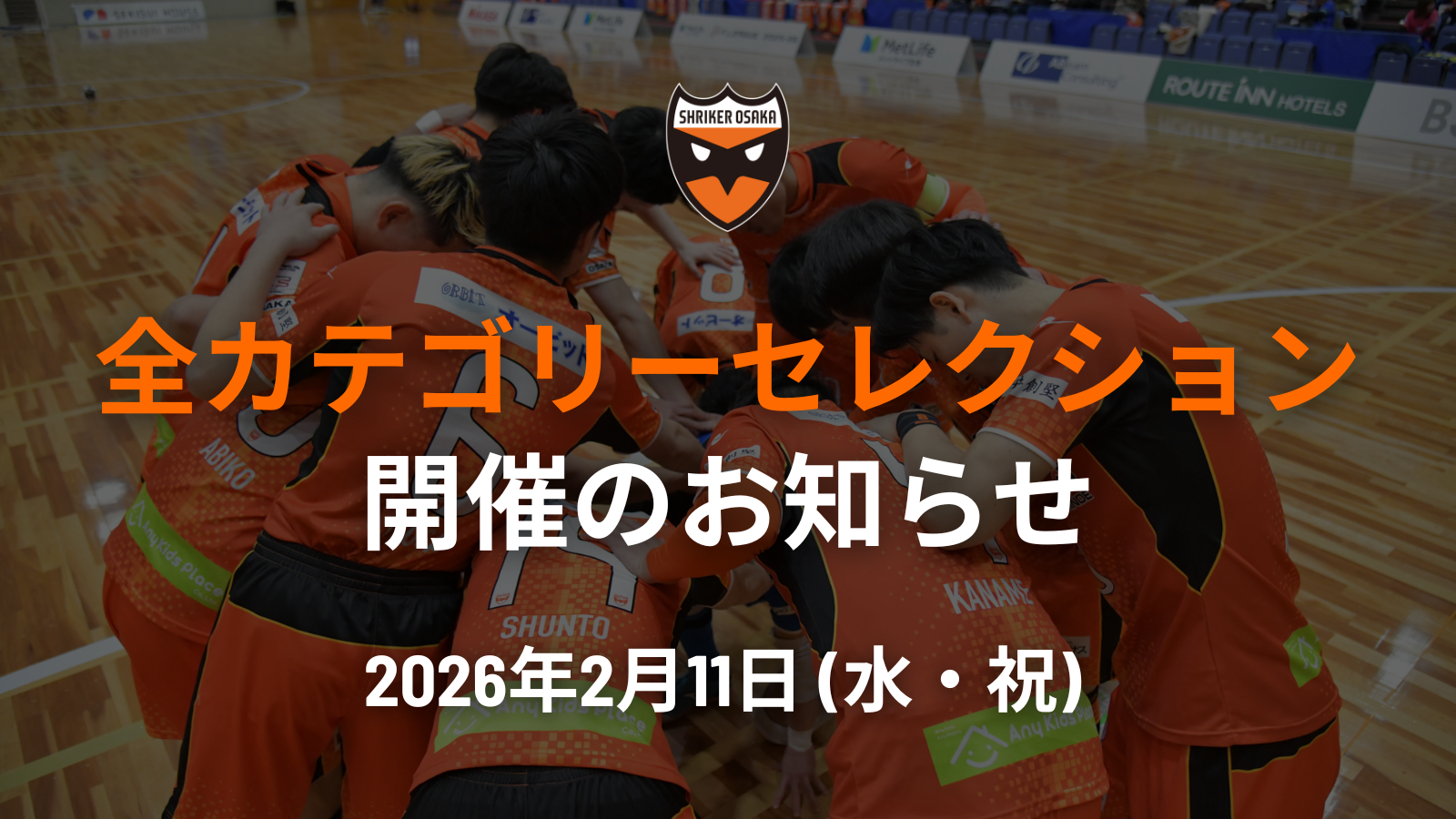 2月11日(水・祝)全カテゴリーセレクション開催のお知らせ