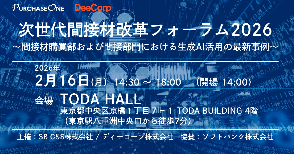 2月16日(月)開催!〈SB C&S × ディーコープ 共同開催 協賛:ソフトバンク株式会社〉 「次世代間接材改革フォーラム2026 ~間接材購買部および間接部門における生成AI活用の最新事例~」