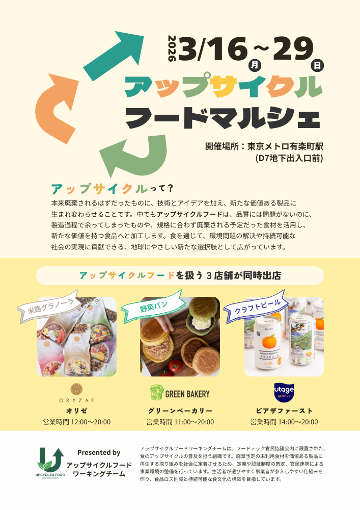 【グリーンエース】東京メトロ有楽町駅にて『アップサイクルフードマルシェ』を開催