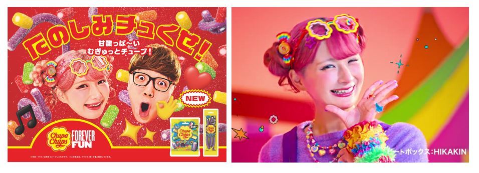チュッパチャプスのグミ第2弾をたのしみチュくせ!しなこさん×HIKAKINさんのビートボックスで紹介する「チュッパチャプス サワーチューブグミ / サワーチューブロンググミ」の新CMが本日より公開!!