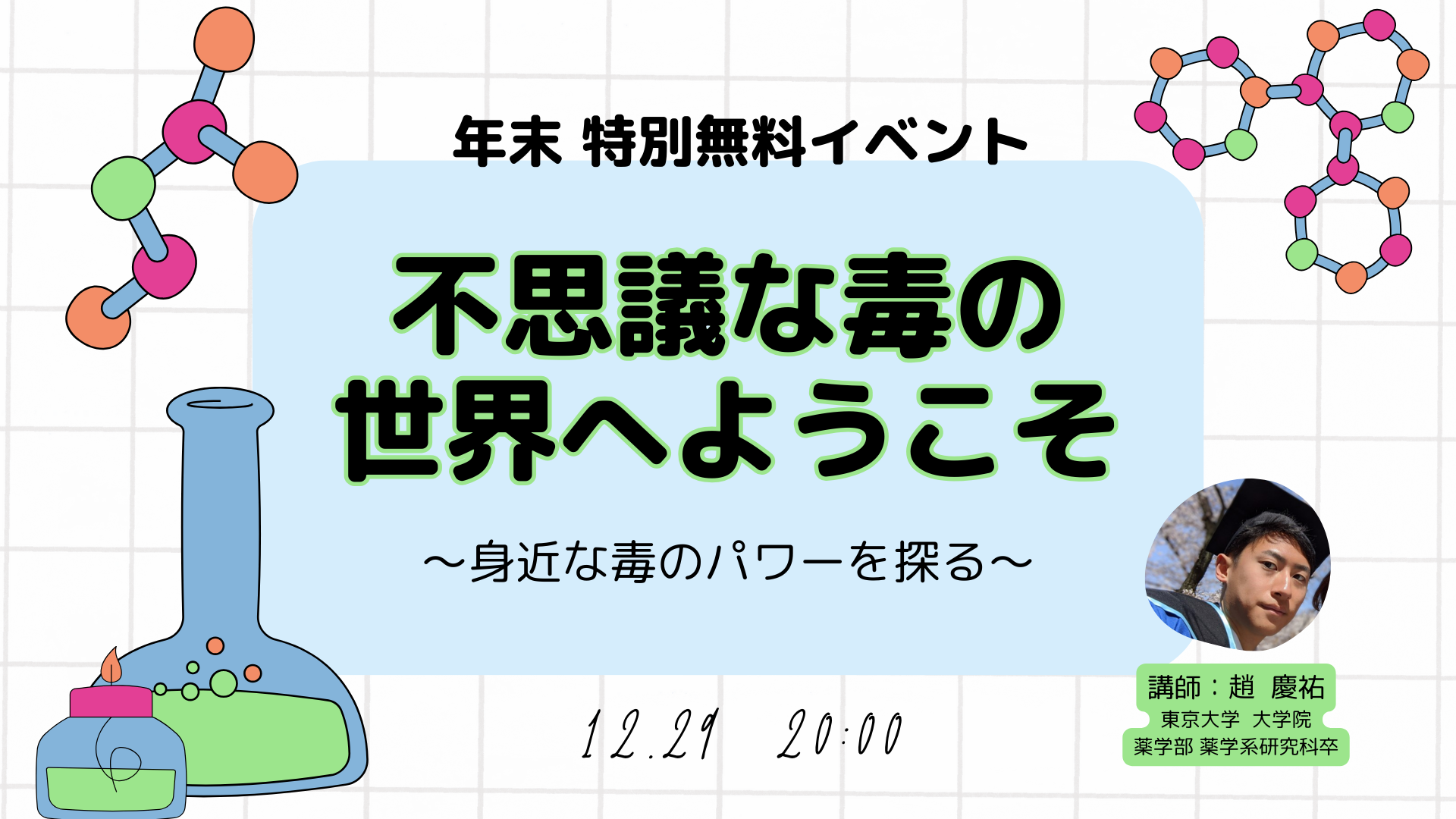 【年末イベント その3】不思議な"毒"の世界へようこそ!小中学生向け無料特別イベントを開催決定!