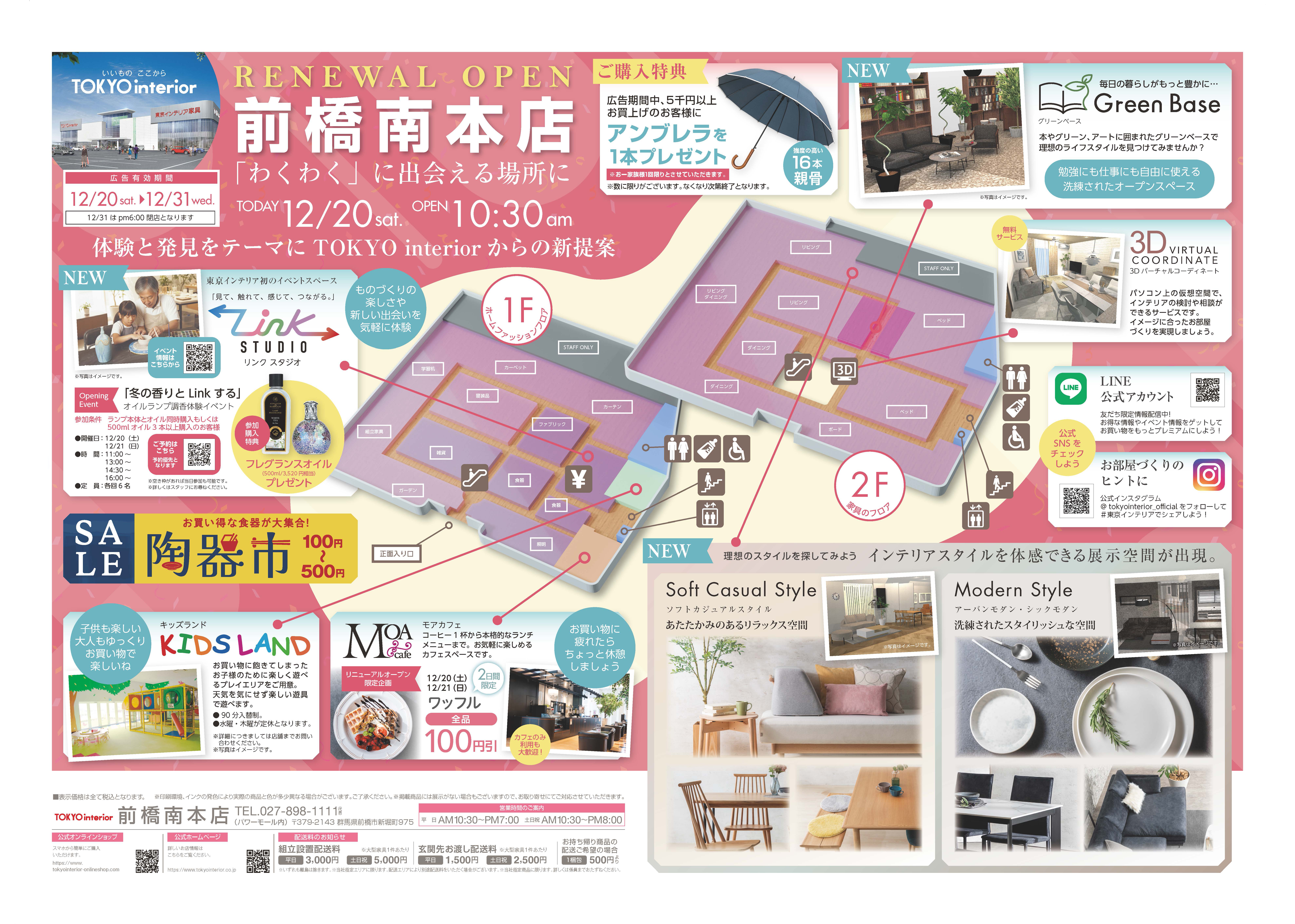 【東京インテリア前橋南本店】12/20日(土)リニューアルオープン!初展開のスペースで新たな体験と発見を