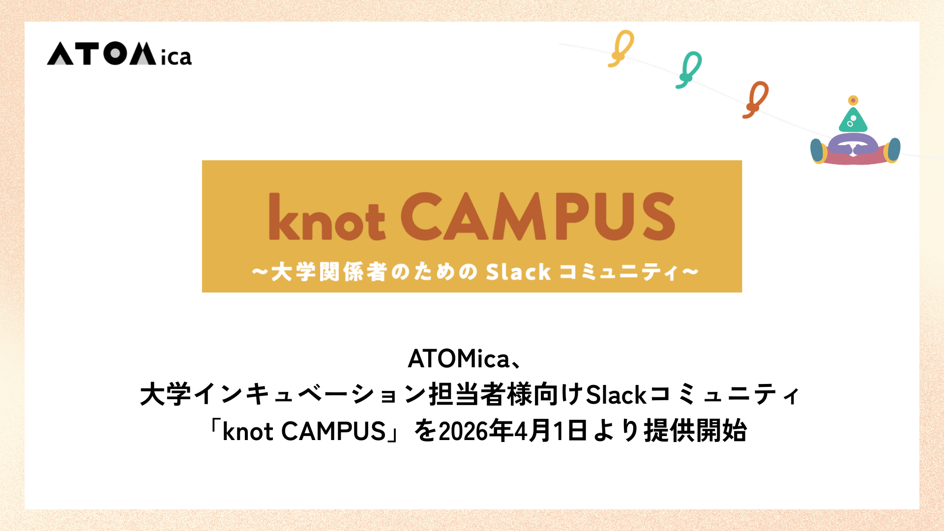ATOMica、大学インキュベーション担当者様向けSlackコミュニティ「knot CAMPUS」を2026年4月1日より提供開始