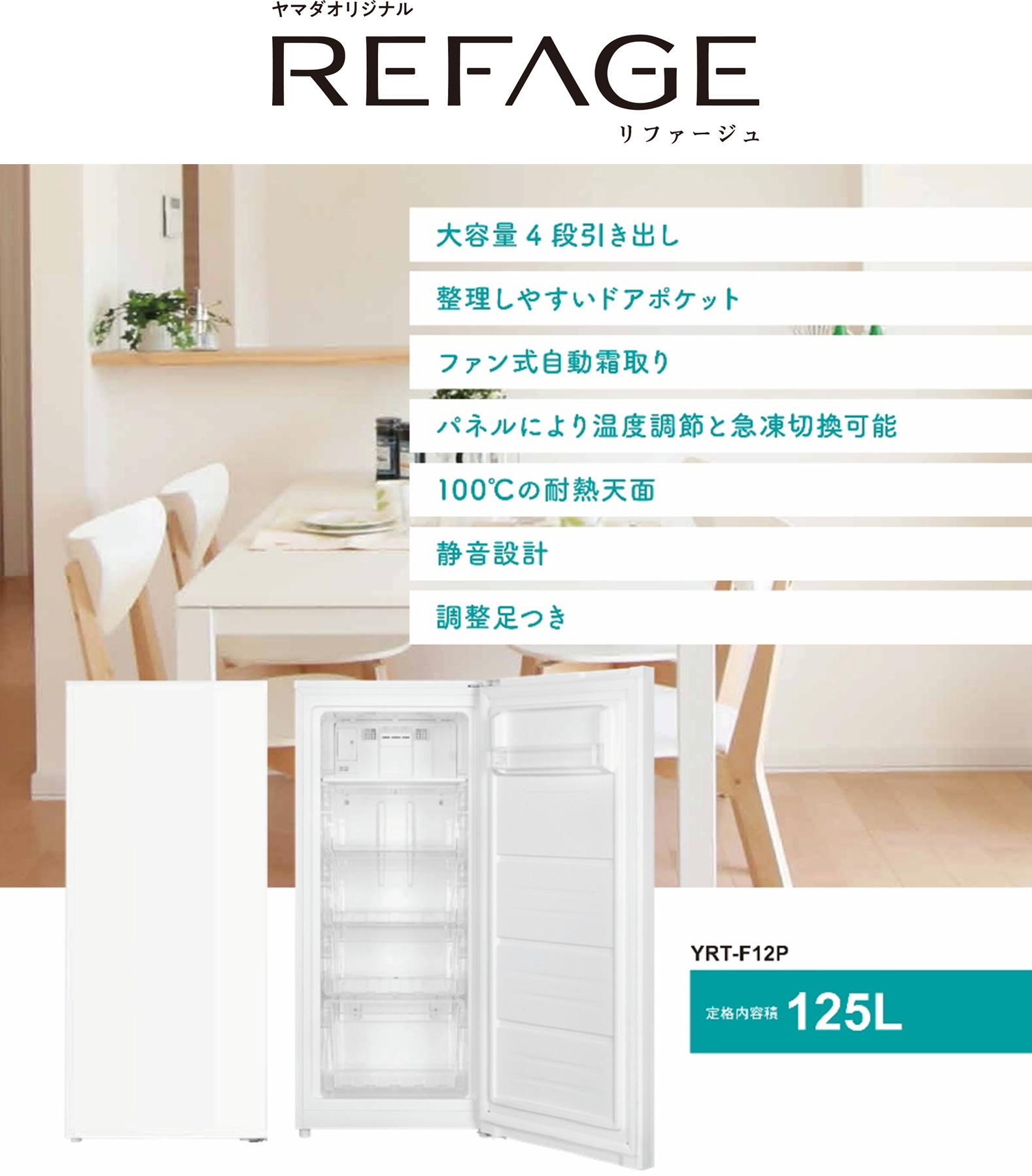 ヤマダオリジナル冷蔵庫「REFAGE」から125Lのコンパクト冷凍庫が新登場
