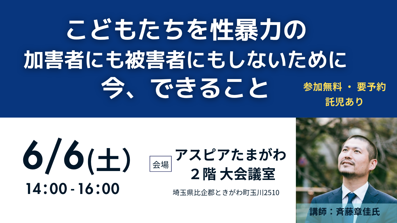 【イベント開催】こどもたちを性暴力から守るためのオトナの学び 6/6(土)埼玉県ときがわ町