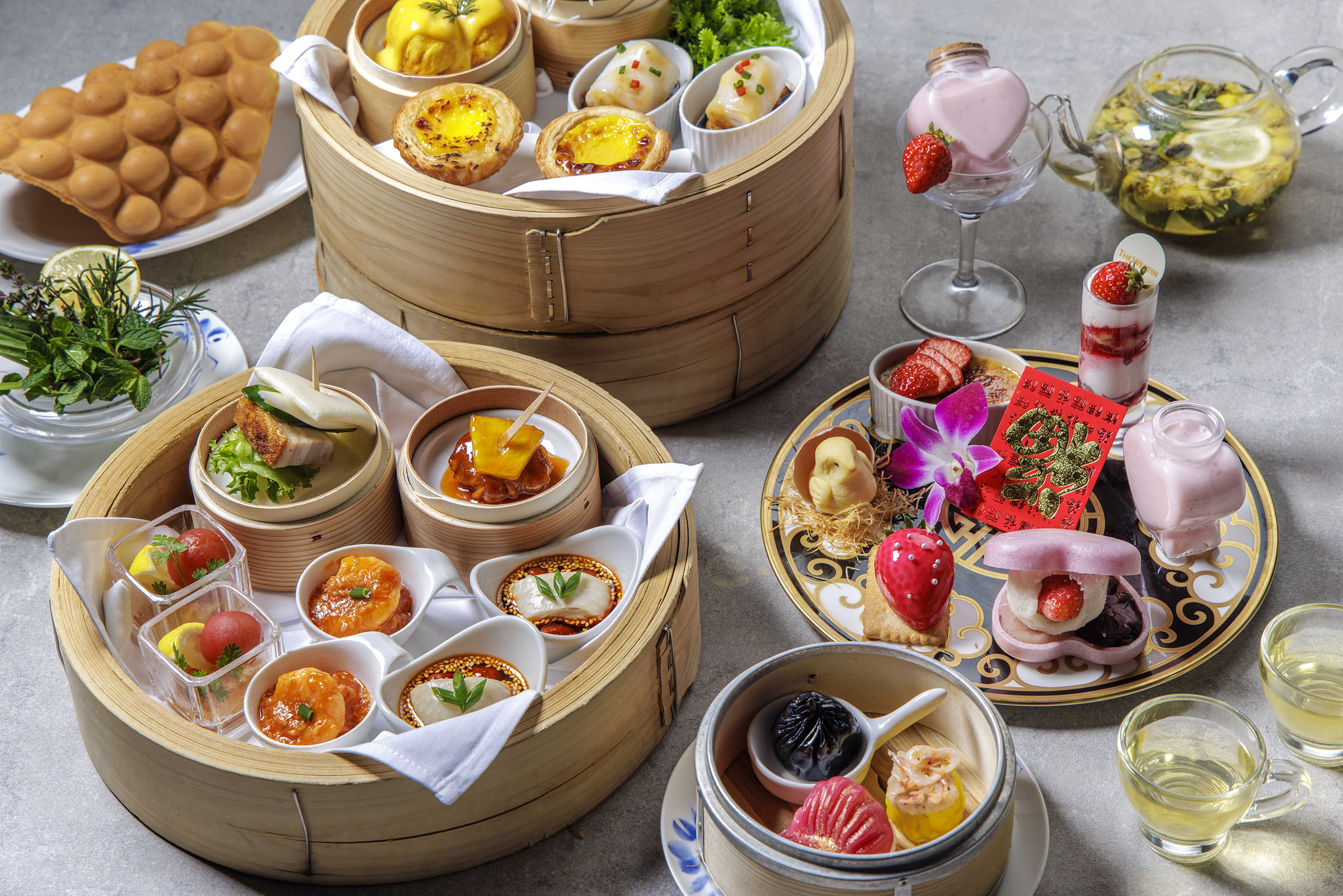 【ウェスティンホテル東京】新メニュー広東料理 龍天門 初の「飲茶アフタヌーンティー」を開始 春の訪れを感じる全19種類の本格点心や香港スイーツなどが集結