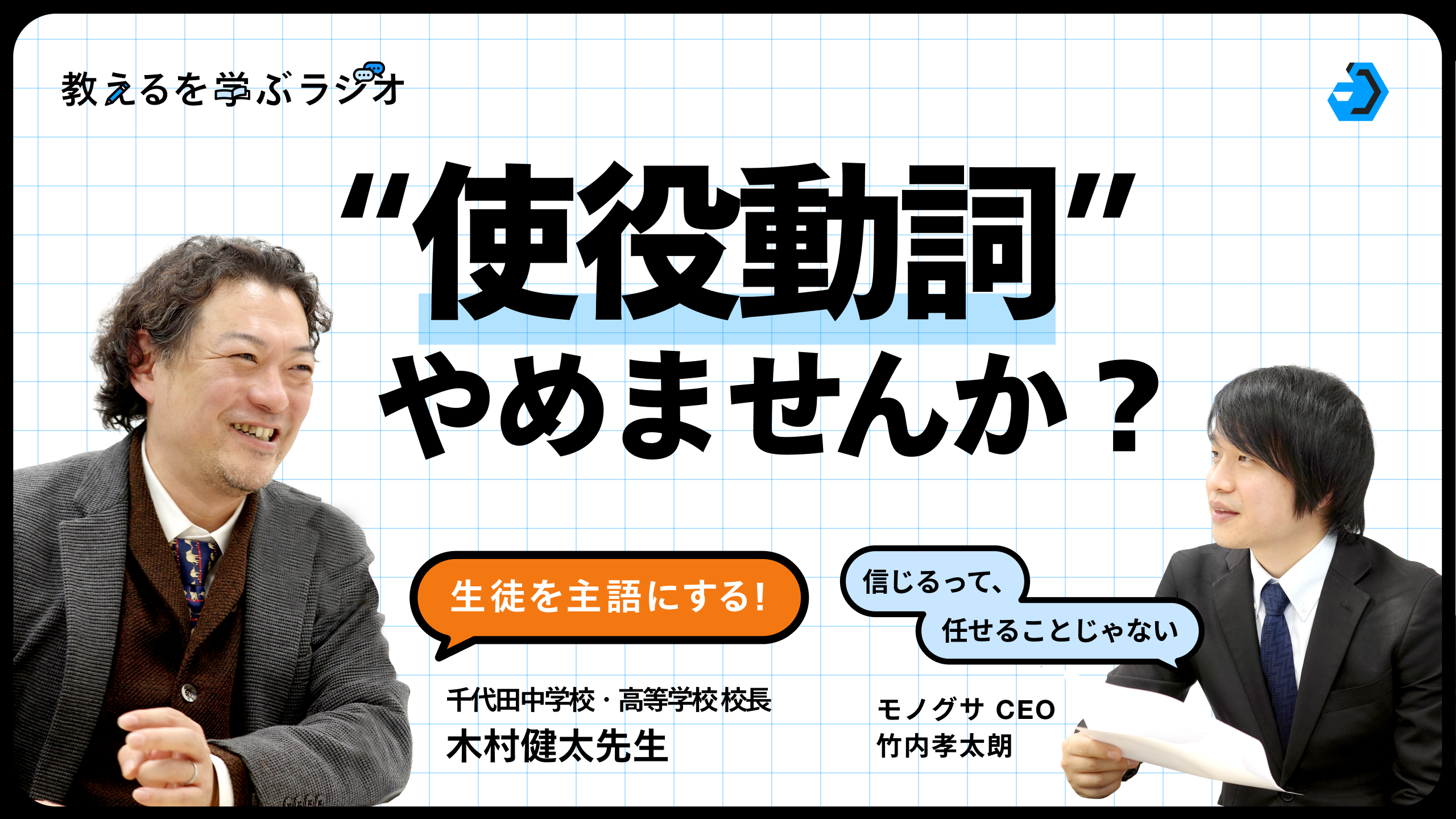 モノグサ公式Podcast「教えるを学ぶラジオ」シーズン2、配信開始~初回ゲストは千代田中学校・高等学校 校長 木村健太氏~