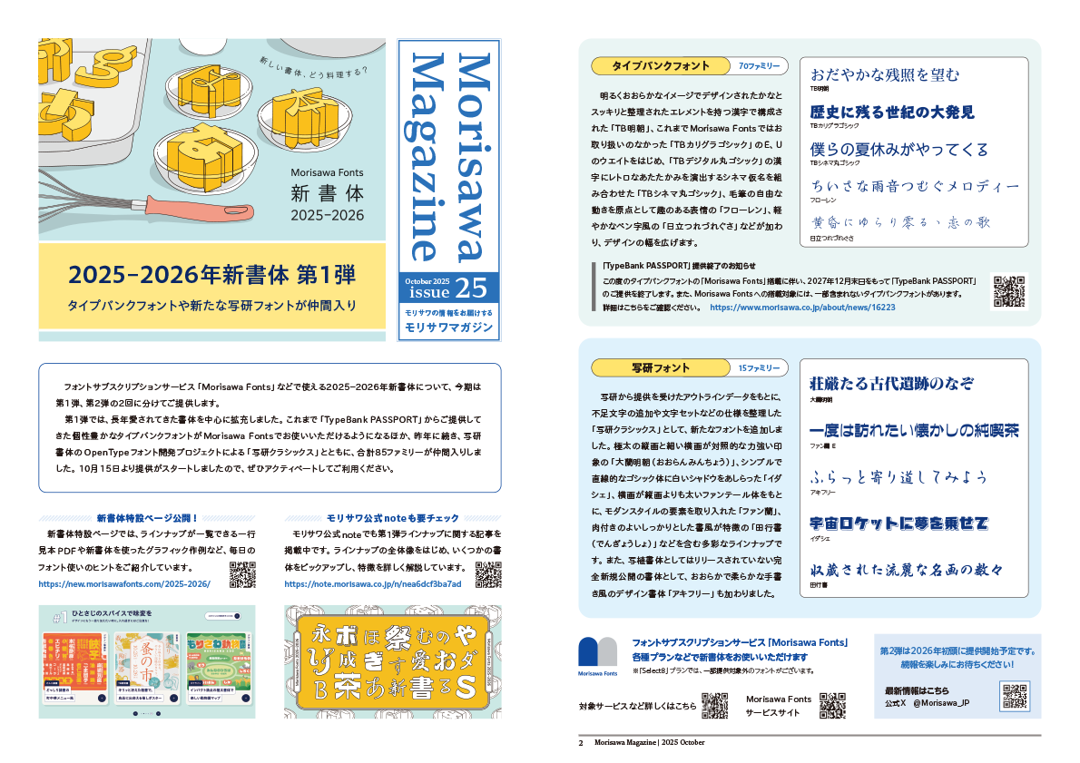 2025-2026年新書体 第1弾をご紹介! 広報誌「MORISAWA MAGAZINE」最新号を発行