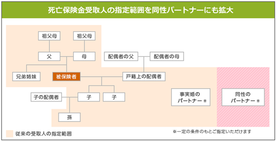 ライフネット生命保険 死亡保険金の受取人として同性パートナーを指定できるよう範囲拡大をしてから10年