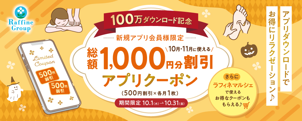 〈期間限定〉累計100万DL達成記念!ラフィネグループ公式アプリで新規会員様限定クーポンを配信中!